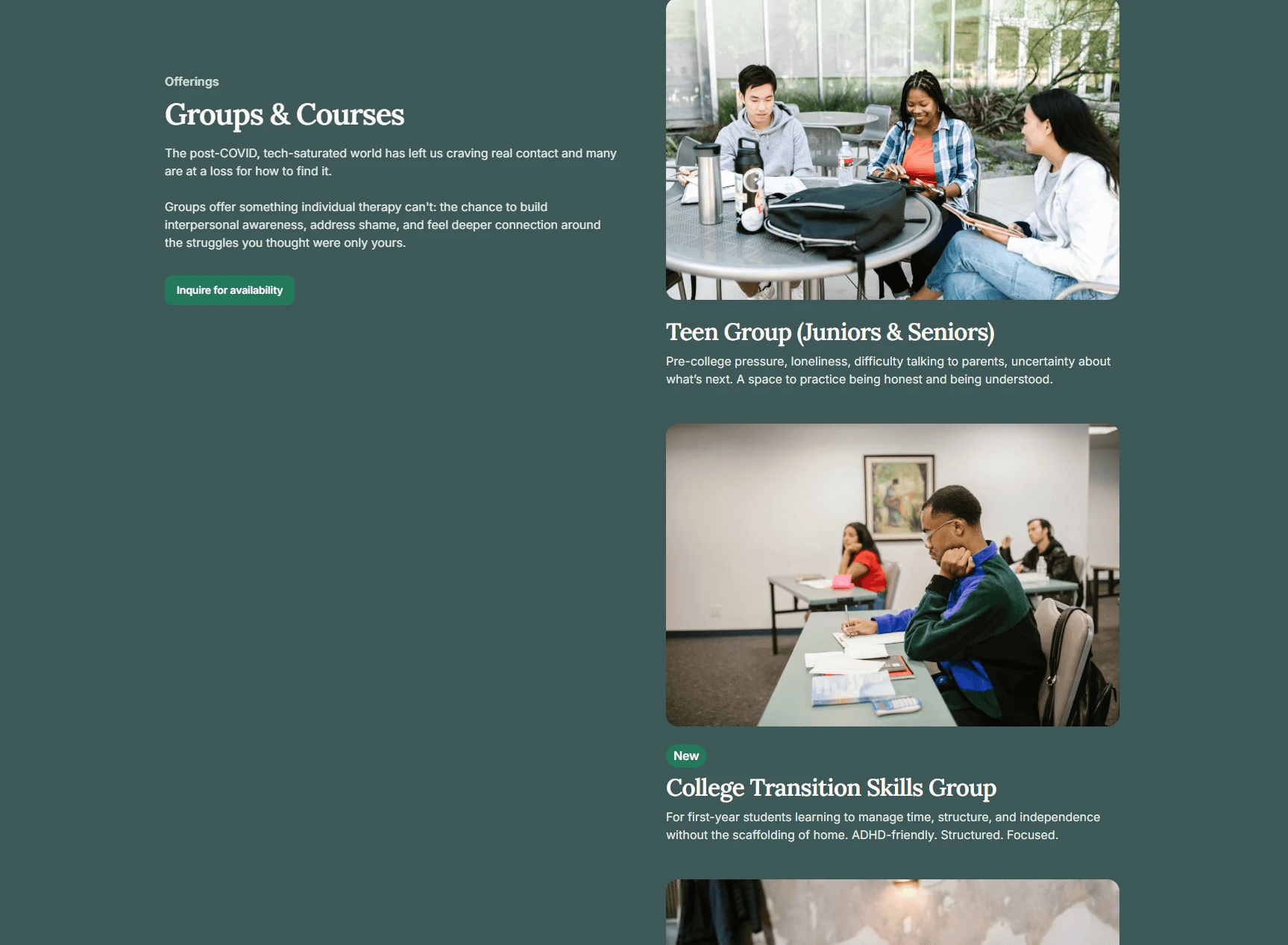 The result is a digital presence that finally matches the scope of what Michal actually does. Referral sources, prospective clients, and fellow clinicians can now see the full picture rather than catching fragments through word of mouth alone.